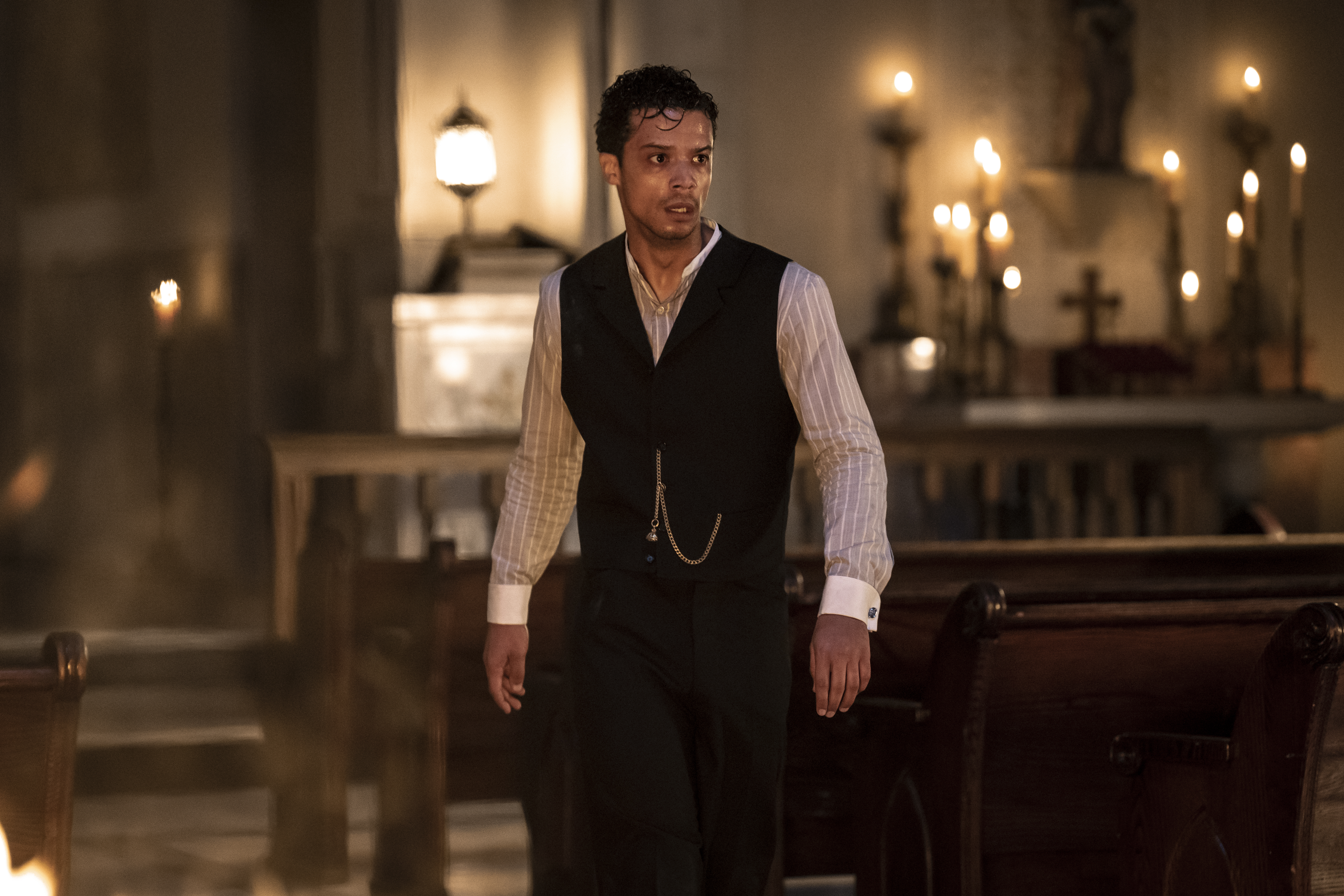 Maybe, but Louis was hating himself way before any of that, as we’ll see a little later in a Church confessional. One of the biggest causes of his self-loathing is his sexuality. His mother and sister seem to tolerate it, sort of, as long as there’s plausible deniability and he keeps funding their elegant lifestyle, though it’s telling Louis feels they “talk behind my back like Paul does to my face.” He wasn’t even able to label himself gay until some point after Lestat; “obviously I’ve fully accepted myself now,” he assures Daniel, as the man he’s lived with for almost a century poses as his servant and doesn’t merit eye contact. The fact that he currently lives in a country in which homosexuality is not legal is almost too obvious to mention.